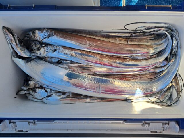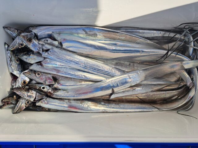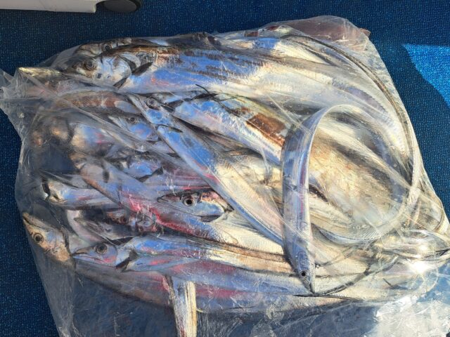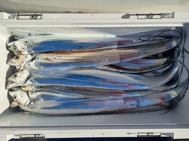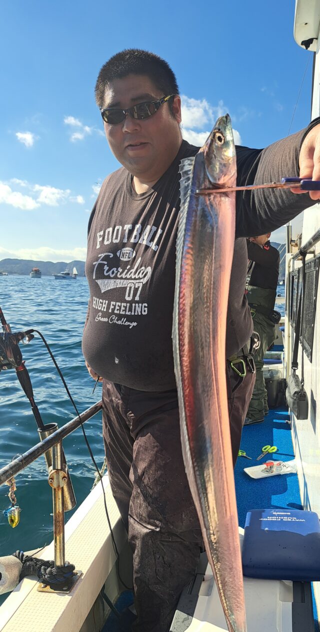 11/29 太刀魚乗合船 2025年11月29日 最終更新日時 : 2025年11月30日 カズ船長 釣れるタナが深いので数は伸びません、今日もアタリっぱなし😂😂 たまにF4〜F5も混ざります😄 1人20匹〜40匹越えたくらい、テンヤの色で釣れ方が違う様な感じでした😅 ありがとうございました