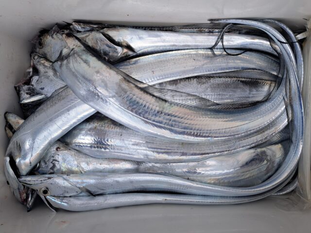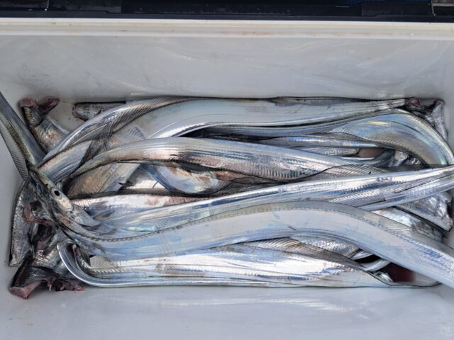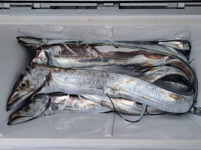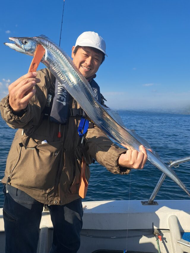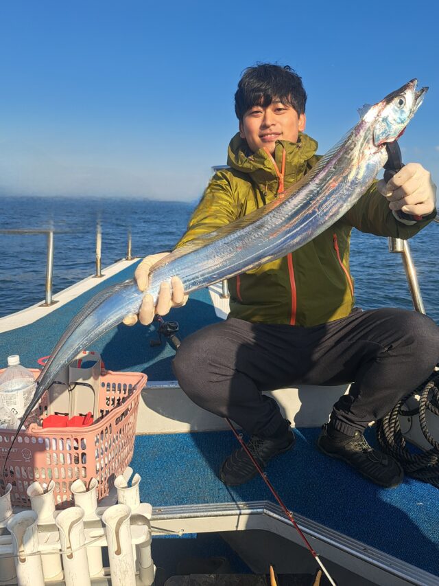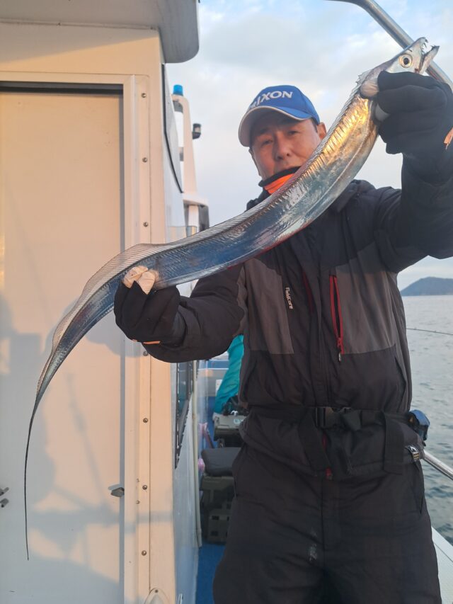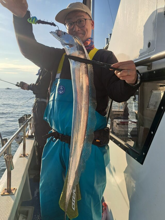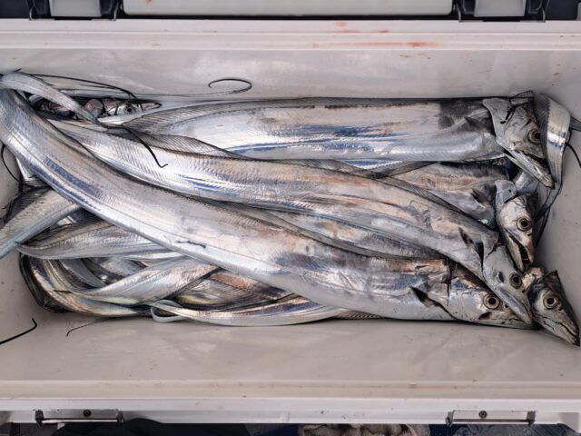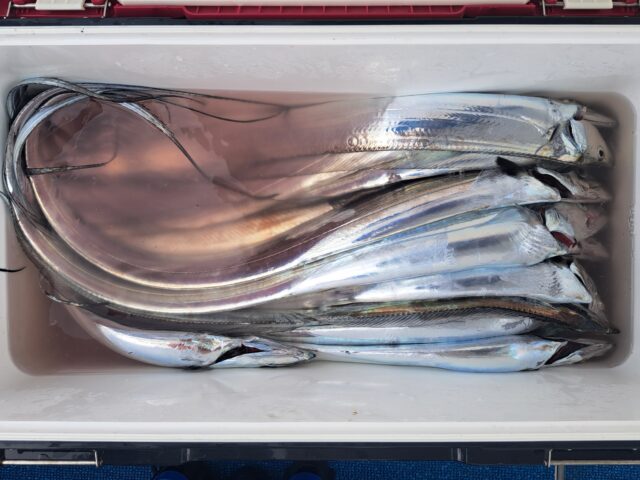 12/11 太刀魚乗合船 2025年12月11日 最終更新日時 : 2025年12月14日 カズ船長 ポツリ〜ポツリ〜段々とペースアップして良型入れ食い😂😂 潮が速くなり食いは落ちましたが、皆さんF4くらいまでは数匹確保👍 納竿前に潮が緩んでアタリも増えて来ましたが1人20~30匹でタイムアップ😣😣 ありがとうございました