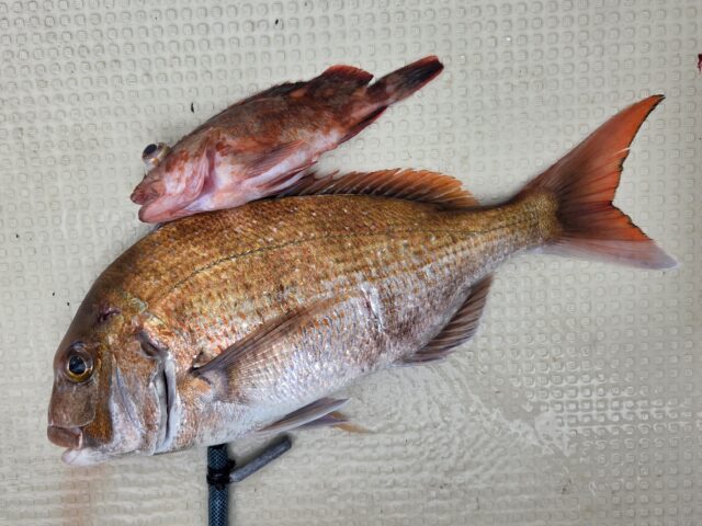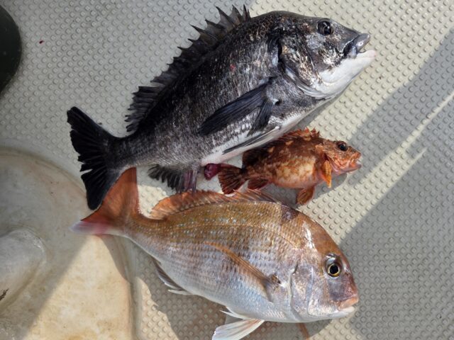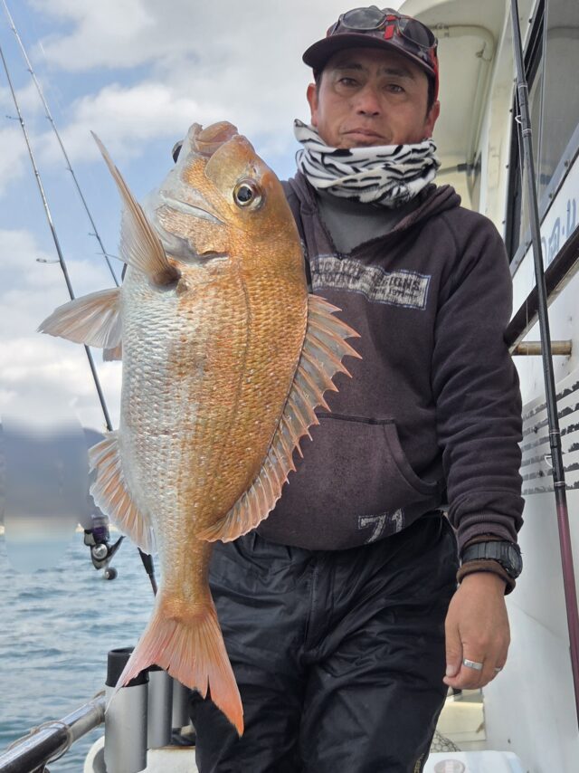 2/1 テンヤ乗合船 2026年2月1日 最終更新日時 : 2026年2月4日 カズ船長 風強くお休みばかりで久々の出船😅 水温下がってアタリ少なく😱コブダイが釣れても嬉しい🤣🤣 たまに本命の顔が見れます🤩 寒さに負けず、諦めずに頑張って納竿5分前で良型GET👍 寒い釣果に成ってしまいました😢 ありがとうございました。