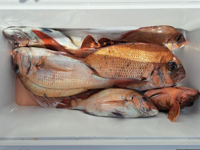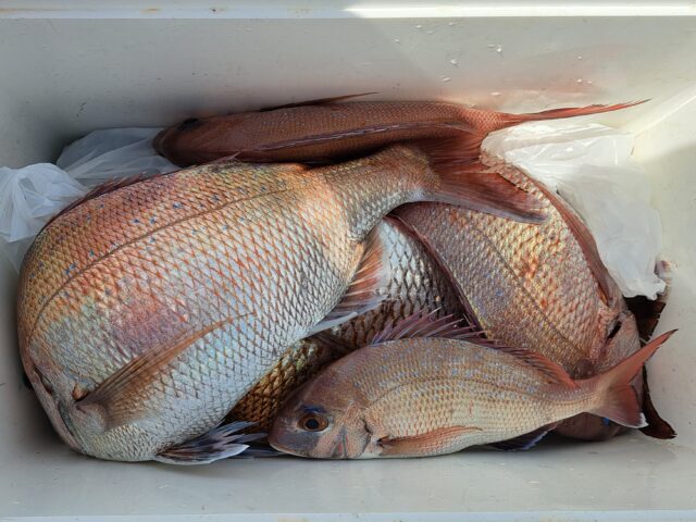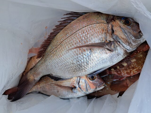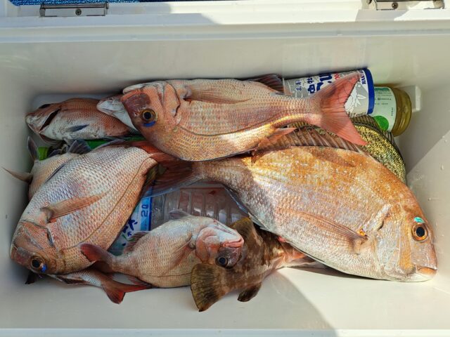 5/5 テンヤ&タイラバ乗合船 2025年5月5日 最終更新日時 : 2025年5月6日 カズ船長 朝からポツリポツリ😄 潮止まりでもポツリポツリ😂😂 潮が返して期待しましたが、アタリが減り不完全燃焼でした😅 ありがとうございました。
