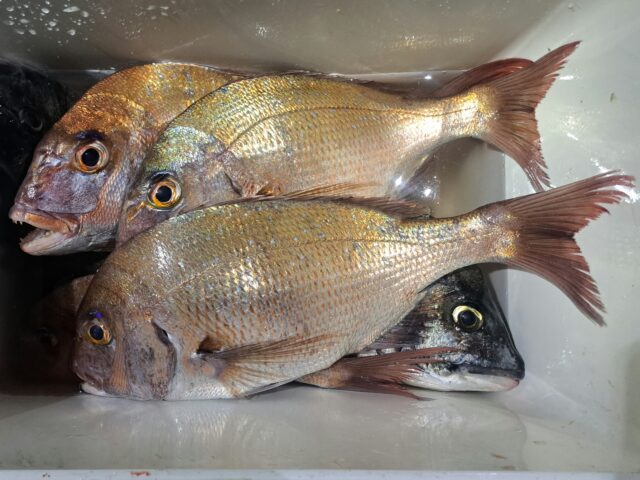 9/27 半夜磯渡し 2025年9月27日 最終更新日時 : 2025年10月1日 カズ船長 K様がフカセ釣りでMAX63cmの真鯛を釣られたました。 F様がフカセ釣りで真鯛、チヌを釣られてました😄 ありがとうございました。